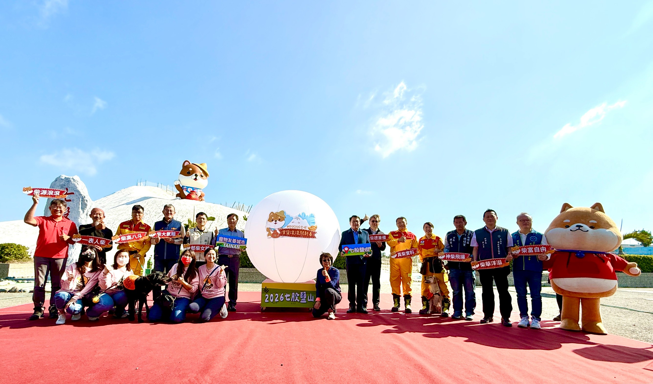 「柴柴大軍」萌力全開,全面攻佔七股鹽山!為迎接2026年,臺鹽公司年度壓軸企劃17日亮相,不只鹽山出現高達6米的巨型柴犬裝置「鹹DOG DOG」,還有四隻柴犬大氣球全園出沒,讓遊客一路打卡找「柴」趣!向來歡迎毛孩落地入園的七股鹽山,今年寵物友善服務再升級,全新「寵物列車」同步啟航,邀請民眾帶上大小孩與毛孩全家出動,一起搭遊園列車、看巨柴、補「柴」氣,一路嗨玩到明年!